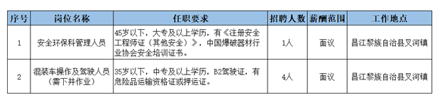 云南民爆集團(tuán)有限責(zé)任公司海南昌江分公司招聘公告