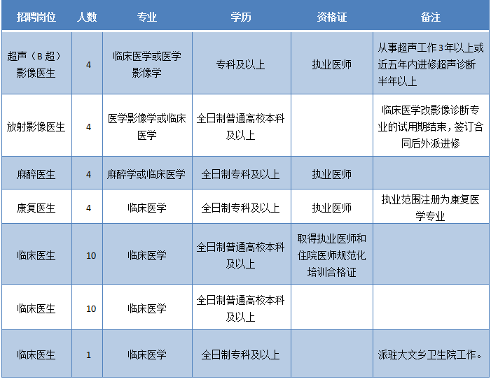 1.超聲醫(yī)生、麻醉醫(yī)生、康復醫(yī)生,工資標準和職稱晉升享受編內(nèi)職工同類同級人員待遇,且一次性給予補助安家費:初級職稱10萬元、中級職稱20萬元,副高職稱以上人員可以參照縣內(nèi)高層次人才引進同等待遇。
